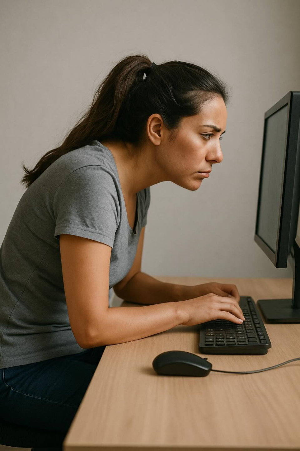 - Pasas horas frente a la pantalla que terminan con tu cuello rígido y espalda tensa.